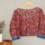elegance to your wardrobe with this handcrafted block print cotton Designed with intricate floral motifs on a soft beige base, this top is perfect for casual outings, office wear, or ethnic styling. The long sleeves with contrasting red printed cuffs bring a unique charm, blending traditional artistry with modern comfort.
